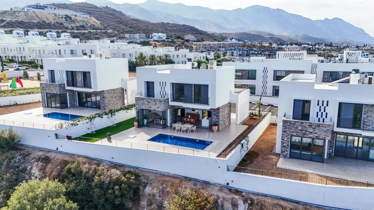 The project is located in Alsancak, Kyrenia, one of the most prestigious areas of Cyprus. It consists of 100 independent units and is ready for delivery with title deeds. In the area, buildings higher than ground floor + 1 storey are not permitted. Situated on a terrace between the Five Finger Mountains and the Mediterranean Sea, all apartments in the project enjoy sea views from their gardens or terraces.